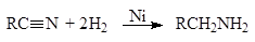Нитрилы легко гидрируются в амины. Гидрирование осуществляется или водородом в момент выделения (С2 Н5 ОН + Na) или каталитически: