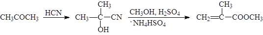 Метилметакрилат в промышленности получают из ацетона через циангидрин: