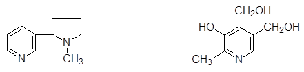 Пиридиновое кольцо встречается во многих природных соединениях (никотин, витамин B6 ). Никотин - стимулятор и яд содержится в стеблях и листьях табака.