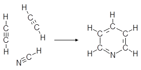 Пиридин получают пропусканием смесии ацетилена с циановодородом в молярном соотношении 2:1 через раскаленные трубки.