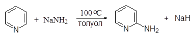 Наибольшее значение для пиридина имеют реакции нуклеофильного замещения. При нагревании пиридина с амидом натрия образуется