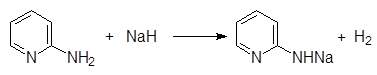 На практике гидрид натрия далее реагирует с a-аминопиридином давая натриевое производное аминопиридина: