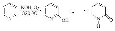 Взаимодействие пиридина со щелочью приводит к образованию 2-гидрокси-пиридина, существующего, как и a-аминопиридин, в двух таутомерных формах: