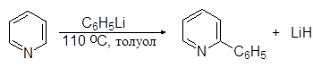 При действии на пиридин литийорганических соединений a-атом водорода замещается на углеводородный радикал: