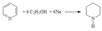 Пиридин восстанавливается легче бензола. Например, натрием в спирте он восстанавливается в пиперидин: