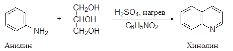 Хинолин и его гомологи содержатся в каменноугольной смоле. Существует много синтетических методов получения хинолина. Из них наиболее широко используемым является метод Скраупа. По методу Скраупа хинолин получают нагреванием анилина с глицерином в концентрированной серной кислоте в присутствии мягко действующего окислителя, такого как нитробензол: