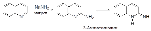 Реакции нуклеофильного замещения протекают наоборот по пиридиновому кольцу, причем для образующихся амино- и оксихинолинов возможна таутомерия: