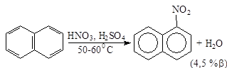При нитровании нафталина азотной кислотой в смеси с H2SO4 при 50-600 образуется почти исключительно a-нитронафталин.