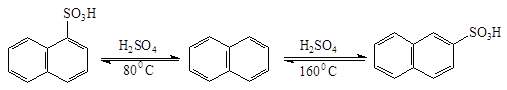 Наиболее важной реакцией является сульфирование, на направление замещения оказывает влияние температура.