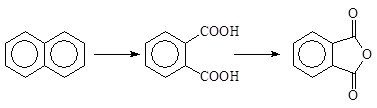 Окисление нафталина кислородом воздуха в присутствии V2O5 приводит к разрушению одного кольца.