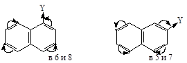 Как и в случае ряда бензола, заместители в нафталиновом кольце оказывают влияние на вступление электрофильной частицы Кроме того оказывает влияние и различная реакционная способность a и b положений нафталинового кольца.