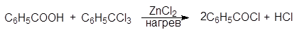 или из бензойной кислоты и бензотрихлорида при 120-130 о С в присутствии кислот Льюиса: