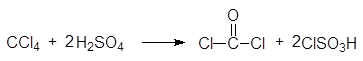 Для получения фосгена в лаборатории предпочитают использовать реакцию тетрахлорида углерода с олеумом: