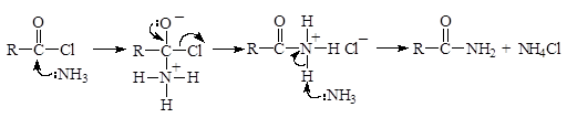 При взаимодействии ацилхлоридов с аммиаком или аминами образуются амиды: