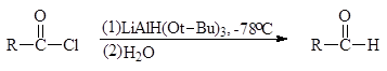 Восстановлением хлорангидридов карбоновых кислот литийтри-трет -бутоксиалюминийгидридом получают альдегиды.