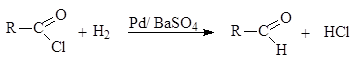 Хлорангидриды кислот могут быть превращены в альдегиды гидрированием в присутствии палладия, нанесенного на сульфат бария. Катализатор дезактивируют добавками хинолина с серой или тиомочевиной.