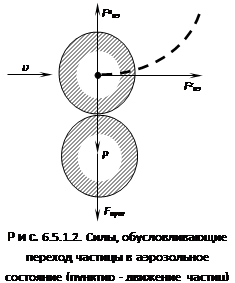 После отрыва частиц под действием воздушного потока возникает вертикальная составляющая аэродинамической силы Fаэ в . Горизонтально и вертикально направленные силы и обусловливают переход частиц в аэрозольное состояние; движение частиц в этих условиях на рис. 6.5.1.2 показано пунктиром.