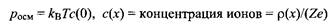 Решение этого уравнения можно получить простой итерацией, начиная с предположения, что s = р/4 и решая уравнение относительно tgS9 что дает более точное значение для S9 и т.д. На рис. показан типичный концентрационный профиль противоионов со значительным накоплением ионов вблизи заряженных стенок. Особенно простое решение получается в том случае, когда правая часть уравнения становится очень большой. При этом условии s стремится к р/2. Это решение имеет ряд интересных свойств. Рассмотрим, что будет происходить при разбавлении системы. Тогда пристеночная концентрация будет стремиться к предельному значению, которое определяется следующим выражением: