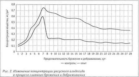 Не вызывает сомнения, что аэрация усиливает образование ацетальдегида, активируя весь процесс брожения. Имеются экспериментальные данные о высокой концентрации ацетальдегида после брожения более аэрированного сусла, чем после сбраживания менее аэрированного.