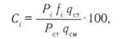 где Рi , РСТ — измеряемые параметры хроматографических пиков интересующего и стандартного веществ (пло-щади); fi — калибровочный множитель для определяемого соединения относительно стандартного вещества, fi = 1;