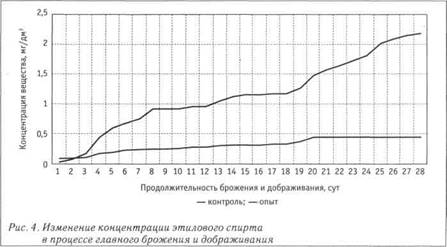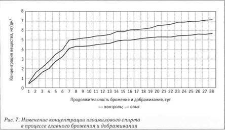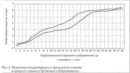 После 10-13 сут дображивания накопление высших спиртов и этилового эфира уксусной кислоты незначительно, из чего можно сделать вывод, что процесс дображивания при получении безалкогольного пива проводят не более 13 сут.