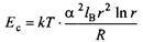 Взаимодействия в этом случае короткодействующие, и, по-видимому, для нахождения электростатической энергии нельзя моделировать систему прямой линией с расположенными на ней зарядами. Вместо этого принимают, что цепь усредненно можно считать сферой радиусом R. Потенциал Дебая-Хюккеля имеет громоздкий вид и его трудно использовать для оценок, но его можно упростить, полагая, что взаимодействие мономерных звеньев строго соответствует кулоновскому потенциалу, но только на расстояниях, не превышающих к~ *. Используя, как и ранее, энтропию идеальной цепи, получим следующее выражение для свободной энергии: