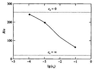 Для незаряженных полимеров можно изменять величину Rtt путем замены растворителя. Хороший растворитель соответствует эффективному отталкиванию между мономерными звеньями. Плохой растворитель вызывает сжатие макромолекулы из-за эффективных взаимодействий притяжения. На величину Rtt полиэлектролитов можно влиять различными способами. Например, увеличение концентрации полимера в растворе увеличивает экранирование взаимодействий и приводит к уменьшению Rtt . То же самое наблюдается и при введении в раствор соли. Другой способ - варьирование рН, что приводит либо к нейтрализации зарядов, либо к ионизации функциональных групп мономеров. Расстояние между концами цепи в этом случае увеличивается пропорционально степени ионизации б. Для слабо заряженного полиэлектролита даже в присутствии соли расстояние между концами цепи зависит от б следующим образом: