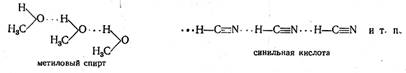 Рассмотрим некоторые примеры. Обычно мы изображаем состав воды химической формулой H2 O. Однако это не совсем точно. Правильнее было бы состав воды обозначать формулой (H2 O)n, где n = 2,3,4 и т. д. Это объясняется тем, что отдельные молекулы воды связаны между собой посредством водородных связей.
