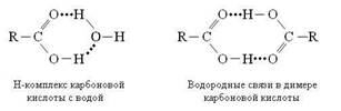 Для карбоновых кислот характерно образование Н-комплексов и ассоциатов псевдоциклической структуры: