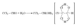 Известно, что геминальные дигидроксипроизводные являются нестабильными соединениями – дегидратируясь легко превращаются в соответствующие альдегиды или кетоны. Хлоральгидрат является одним из немногих примеров, когда структура гем- диола является стабильной. И причину этого объясняют как сильным отрицательным индукционным эффектом (-I-эффект) трихлорметильной группы, так и наличием внутримолекулярных Н-связей: