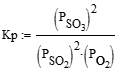 Количество окисленного SO2 характеризуют долей общего содержания диоксида серы (сернистого ангидрида) в газе или в % (к общему первоначальному количеству SO2 в газе). Максимальная степень превращения диоксида серы в триоксид при заданных условиях (температуре, давлении, исходных концентрациях реагирующих компонентов) достигается в условиях равновесия. Для состояния равновесия с учетом уменьшения объема газовой смеси при протекании реакции выражения для парциальных давлений компонентов смеси принимают вид (выражение справедливо при общем давлении 1 атм): где a и b – исходные парциальные давления диоксида серы и кислорода, хр – равновесная степень превращения.