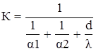 Где К-коэффициент теплопередачи, определяющийся по следующей формуле