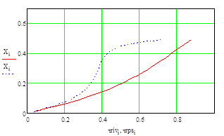 Из графика зависимости X-t (зависимость степени реактора от времени) видно, что она и в реакторе полного смешения, и в реакторе вытеснения имеет возрастающий характер, так как чем дольше время пребывания реакционной смеси в реакторе, тем больше образуется конечного продукта.