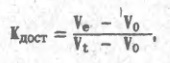 Если размеры молекул белка таковы, что они могут проникать в поры, составляющие некоторую часть объема гранул, то будет наблюдаться задержка элюции и белок появится в объеме Ve , связанном с коэффициентом доступности (долей объема гранул, доступной данному виду молекул) соотношением: