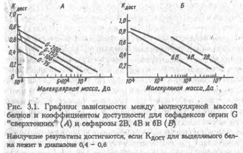 Каждому белку в зависимости от размеров его молекулы соответствует свое значение, на чем и основало разделение при гель-хроматографии. Понятно, что если объем элюции