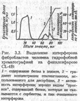 После промывания колонки для удаления неспецифически удерживаемых примесей белок элюируют, изменяя состав протекающего через колонку раствора так, чтобы ослабить взаимодействие белка с лигандом. Для этого прибегают к изменению рН, добавляют к элюенту неорганические соли, органические растворители. Все эти факторы, воздействуя на структуру зоны связывания лигвнда и подавляя от дельные виды белок-лиг видных взаимодействий, например ионные связи и гидрофобные контакты, обеспечивают десорбцию. В отдельных случаях прибегают к аффинной элюции раствором лиганда или его аналога. Этот прием, основанный ив конкуренции за связывание белка между присоединенным к матрице и растворенным лигандами, весьма специфичен и эффективен, но дорог.