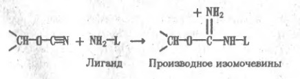 Известны и другие способы присоединения лнгандов к матрице, однако в каждом случае следует учитывать изменения в характере носителя, сопровождающие реакцию с лигандом, а также большую или меньшую неустойчивость образовавшейся связи, которая иногда может вызывать постепенную "утечку" лиганда. Например, изомочевина может превращаться в производное гуанидина в присутствии значительных концентраций первичных аминов или аммиака, что влечет за собой отщепление лиганда.