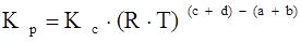 Из уравнения следует, что Кр = Кс при условии, если реакция идет без изменения числа моль в газовой фазе, т.е. когда (с + d) = (a + b).