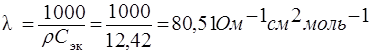 где λ – эквивалентная электропроводность, Ом – 1 · см2 · моль– 1 ;