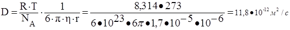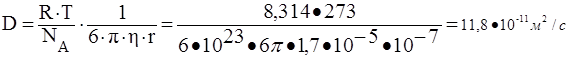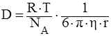 Коэффициент диффузии для сферической частицы рассчитывается по уравнению Эйнштейна: