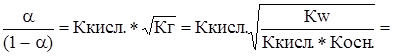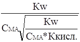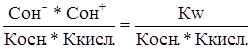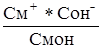 | Кг= | Сн+ * Сон- | = | Кw | (8) |