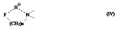 Отклонения точек для аминов, содержащих электроотрицательные заместители, также, по-видимому, следует связывать с увеличением DGB этих аминов за счет стабилизации их катионов при образовании внутримолекулярных водородных связей, например типа IV для фторсодержащих алкиламинов.