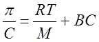 Где С – концентрация, М – относительная молекулярная масса полимера, В – некоторый коэффициент характеризующий отклонение от уравнения Вант – Гоффа.