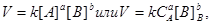 Где V – скорость реакции; k – константа скорости реакции (при [А] = [В] = 1 моль / п k = v – численно), [А] и С [В] и С – разные формы обозначения концентрации, a и в – стехиометрические коэффициенты реагентов А и В в уравнении реакции.
