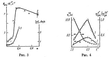 где Р — измеряемая поляризация люминесценции раствора меченого полимера; тф — длительность свечения; 1/Р0 ' — параметр, связанный с амплитудой высокочастотных движений метки или термодинамической гибкостью цепи, связывающей антраценовое ядро с полимером. Содержание люминесцирующих меток в полимере не должно превышать 0.2 мол. %. Для сопоставления времен релаксации т для полимеров в растворителях разной вязкости определяют значения хпр , приведенные к одному значению вязкости растворителя г)пр с помощью соотношения