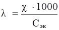 где λ – эквивалентная электропроводимость, Ом – 1 · см2 · моль– 1 ;