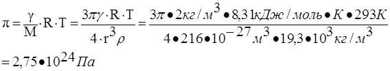 62. Определить осмотическое давление гидрозоля золота с массовой концентрацией дисперсной фазы 2 кг/м3 при температуре 293 К, учитывая что диаметр частиц 6·10-9 м, а плотность дисперсной фазы 19,3·103 кг/м3 .