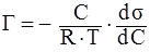 где Г – величина адсорбции, кмоль/кг или кмоль/м2 ;