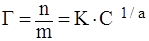 где Г – величина адсорбции, кмоль/кг (кмоль/м2 );