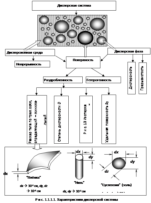 Дисперсная фаза - это частицы, распределенные в среде. Ее признаки: дисперсность и прерывистость (рис. 1.1.1.1).